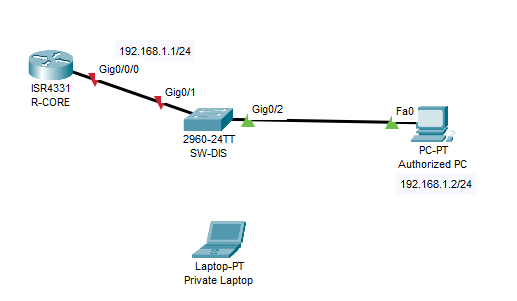 We will make the security port if there are unauthorized device try to connect to the gig0/1 port will be discard the traffic and mac address from unauthorized device.