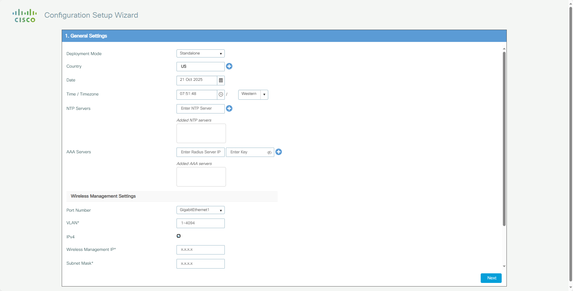 Initial Configuration Cisco Wireless Controller 9800 CL (VM Based).