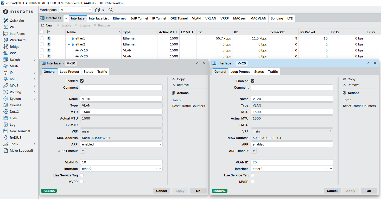 - VLAN ID : VlanID for vlan interface (10 & 20)