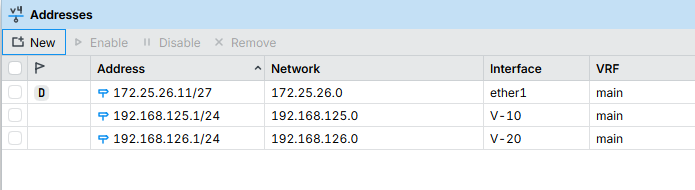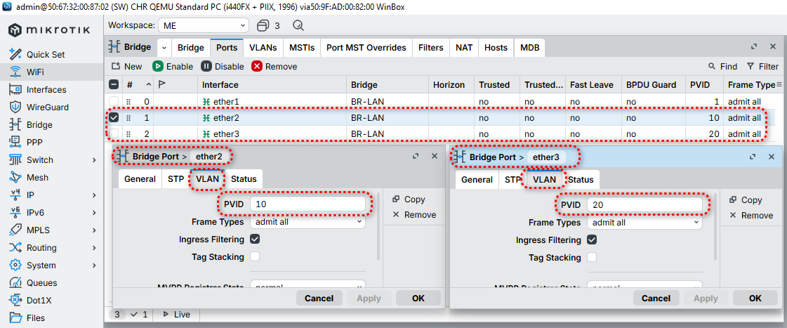 - add PVID : 20 (for ether3 with vlan20 connection)